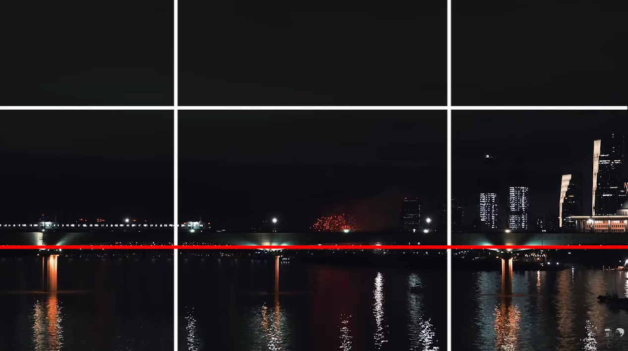 삼분할 선에 맞추어 포인트를 넣으면, 영상이 안정적으로 보일 수 있음.