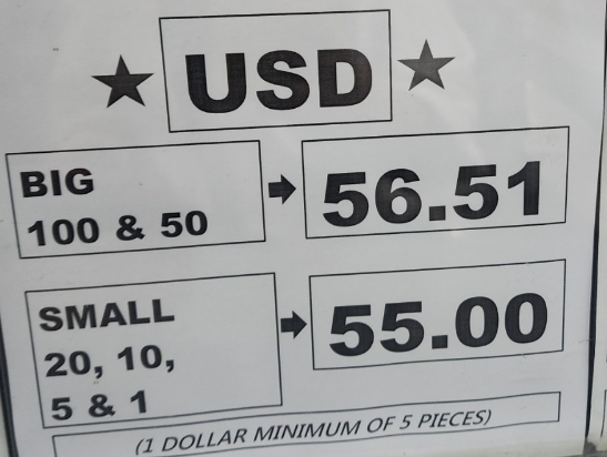 2. 환전소에서 단위가 큰 지폐($100)로 환전할 수록 환전 이득. (ex. 우측 사진)